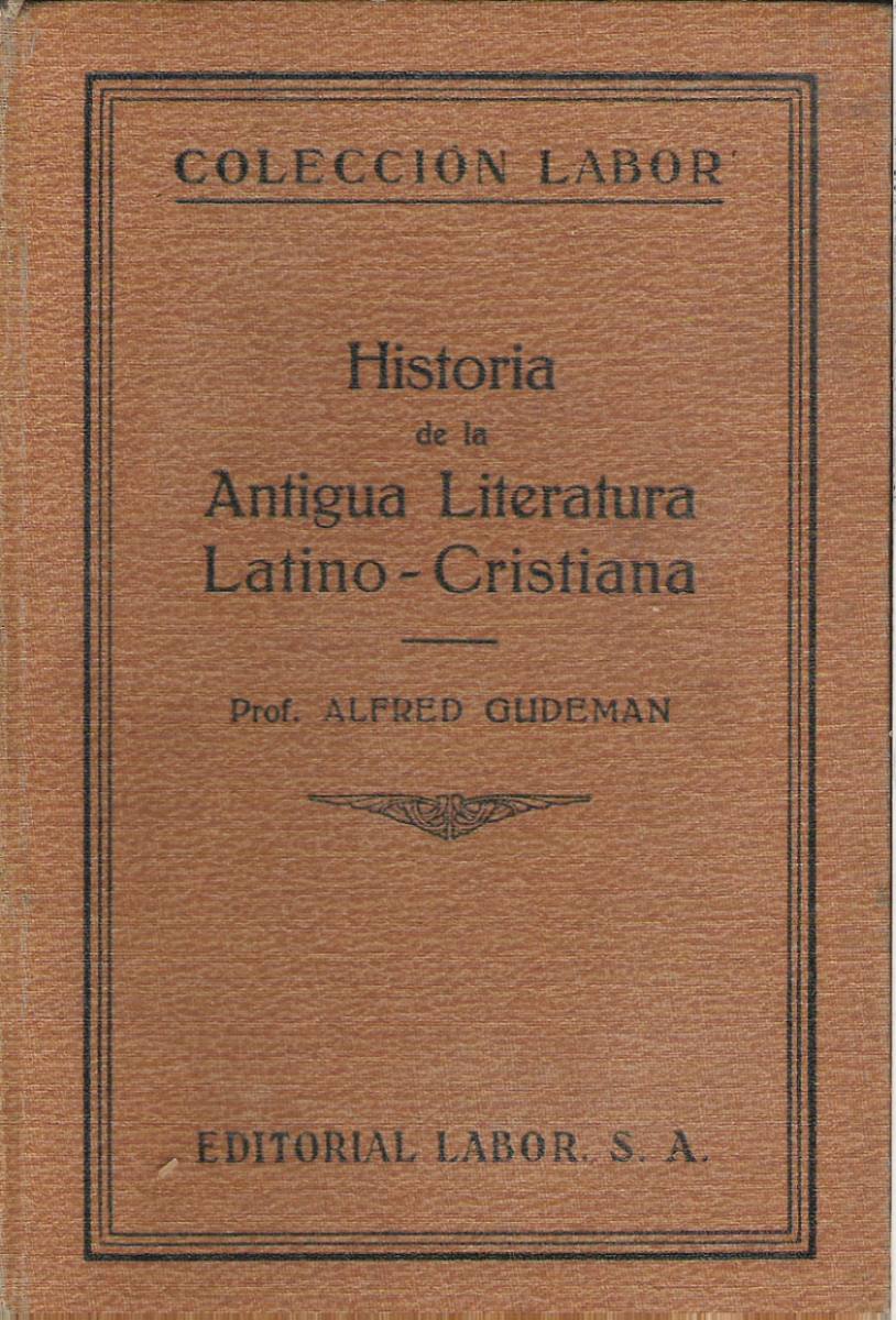 Gudeman, Alfred, 1862-. Historia de la antigua literatura latino-cristiana. --2a ed.. --Barcelona: Ed. Labor: 1940. 151)# Ingreso:2-0000007272 156 p., xvi : láms. facsíms..; 19 cm..